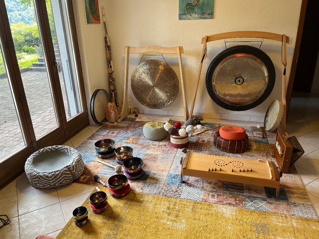 Nous avons créer un espace afin de vous accueillir à Aux Couleurs de l'Âme dans le village de Mettembert pour des immersions sonores avec des gongs, bols chantants Fusion, bols de cristal, tambours chamaniques, shruti box, monocorde et autres instruments.